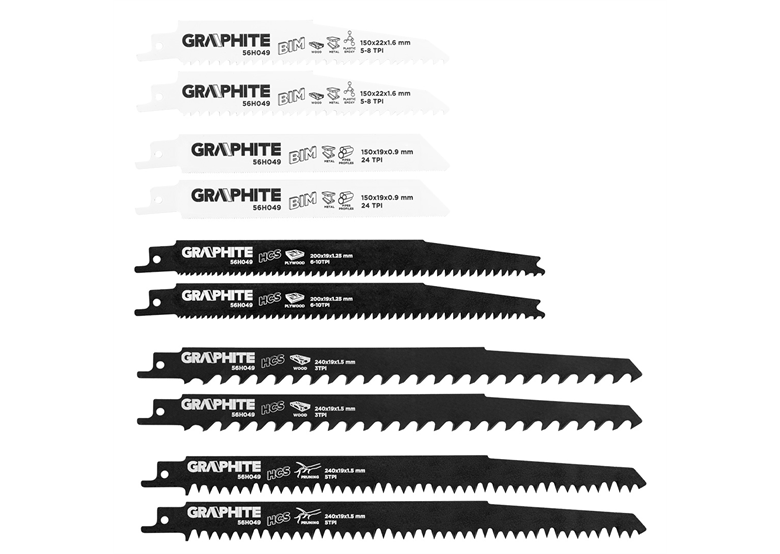 Sägeblätter für Säbelsäge, 10 Stk. Graphite 56H049